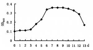 说明:下培养,每隔24h取样测定OD660值,以培养时间为横坐标,以OD660值为纵坐标,做出菌株NS的生长曲线,见图1.