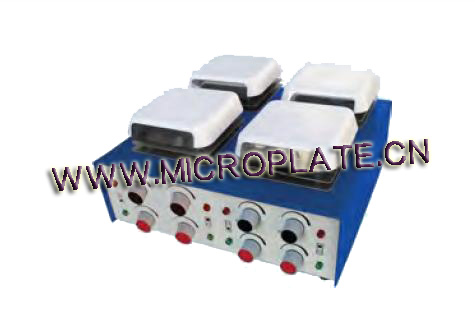 (2+2排列);单独的4个加热磁力搅拌器组合;4个11.5x11.5cm.抗化学腐蚀台面;台面抗腐蚀传热快;强力高转速的电机搅拌器;温度控制范围: