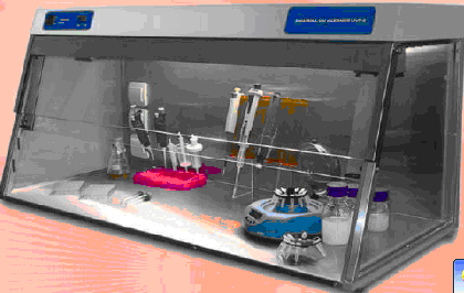 (或有机玻璃)墙和工作表面涂上粉彩或制成的不锈钢(见规格表上的70页)。UV-橱柜配有一个开放的紫外灯安装在上部。在工作区域紫外线的灯打开消毒,在15