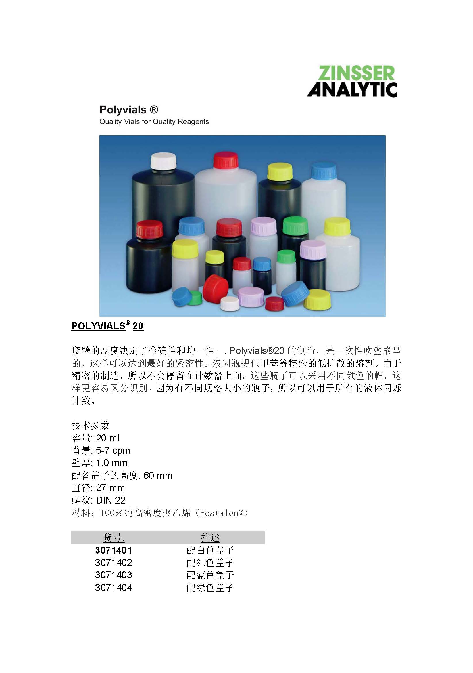 塑胶计数小瓶已经取代了低钾玻璃计数小瓶。其低廉的价格可以使用一次,然后处理掉,